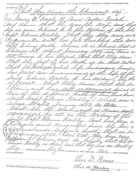 widow of Captain Edwin Hadley