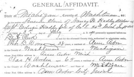 Pension claim of Nancy W. Hadley