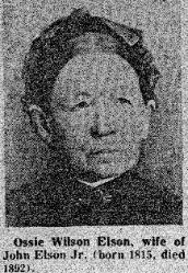 John Harris Elson was born 14 Oct 1806 in Brooke, Stafford, Virginia, United States, died 26 Nov 1898 in Greene County, Missouri. Burial at Elson aka Glen Cemetery, Mapleton, Stark County, Ohio, United States married Ossie Wilson born 15 May 1815 in Waynesburg, Stark Co., Ohio, died 21 Jan 1892 in Stark Co., Ohio. Burial at Glen Cemetery, Mapleton, Stark County, Ohio