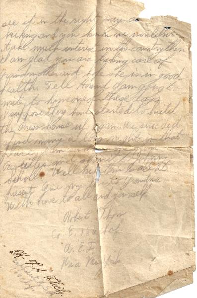 Robert's last letter home to brother Hillis